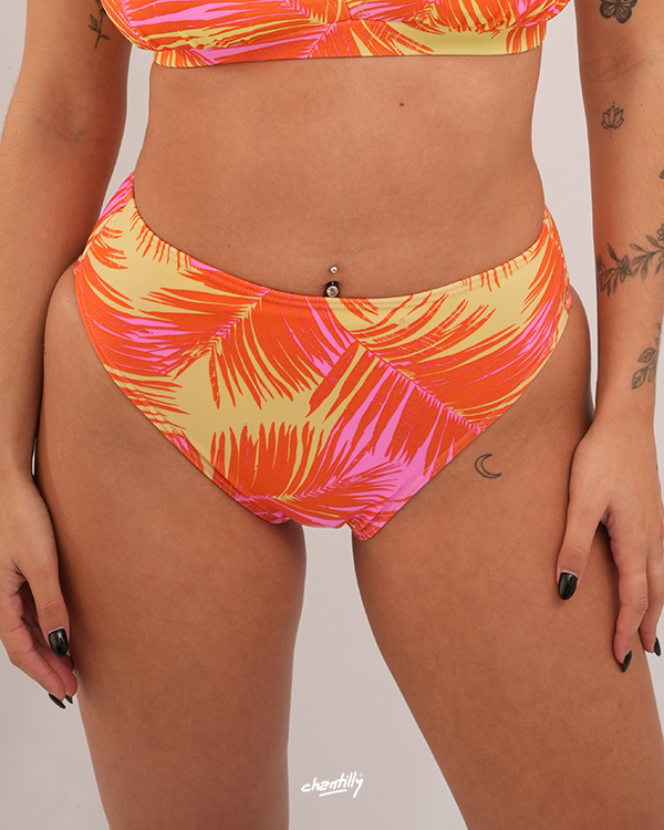 Vedetina tiro alto, cavado media cola y cintura recta.
