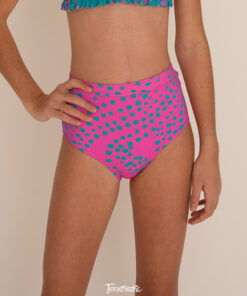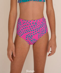 Bikini tiro alto con cintura. La moda de las más chiquitas siempre, de alguna manera, sigue a la de las mujeres jóvenes. Y esta bombacha es un poco eso, tendencia adaptada a las nenas.