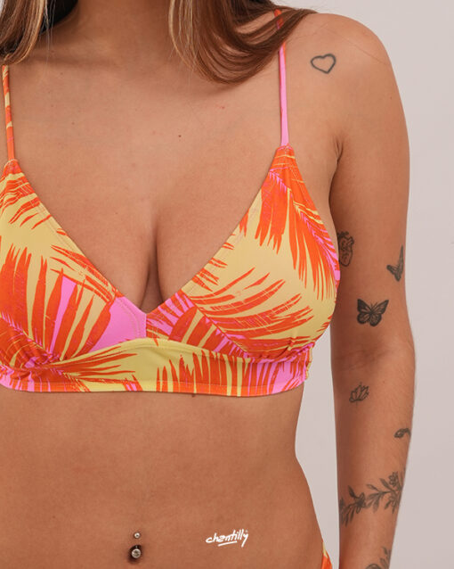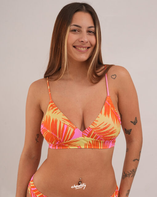 Este corpiño es para quienes buscan la estética de un triangulito pero sin renunciar a la seguridad que les da una base fija,