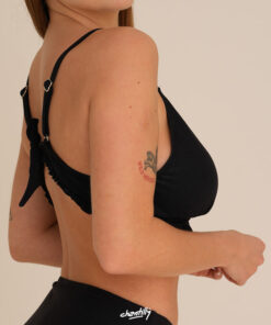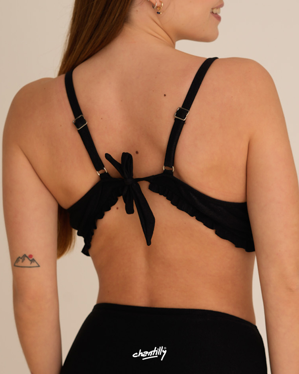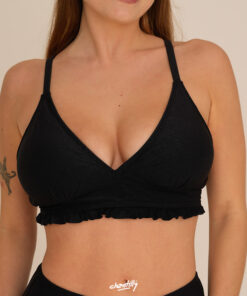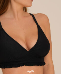 Este corpiño es para quienes buscan la estética de un triangulito pero sin renunciar a la seguridad que les da una base fija,
