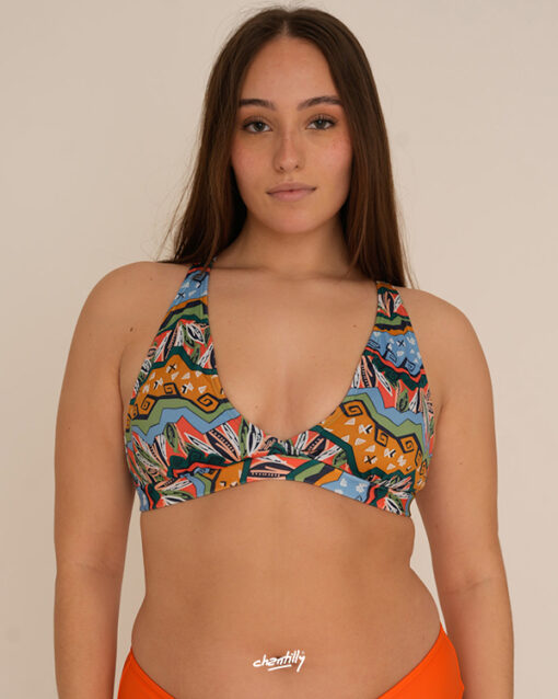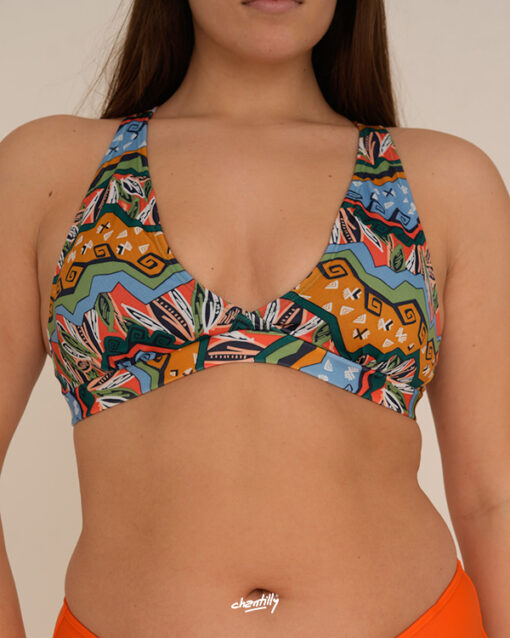 Corpiño estilo Marilyn, con espalda super canchera que brinda un súper agarre.