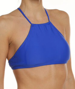 Top alto con espalda cruzada y detalle de avío y borlas en la punta de los breteles.