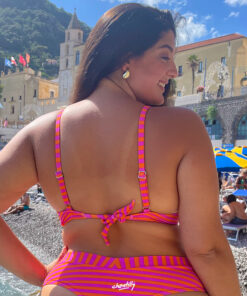 Los breteles anchos tienen avíos para adaptar el largo, la corredera queda ajustada para que una vez regulada no se mueva más y la clienta se sienta segura.