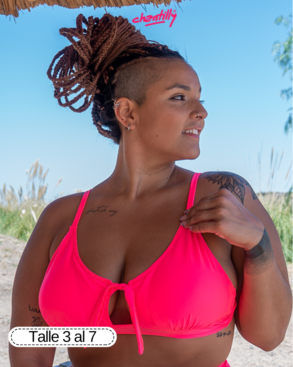 La base es ancha para brindar mejor sostén y tiene coletas que envuelven el busto hasta la espalda, detalle que muchas clientas con mucho busto agradecen