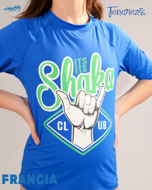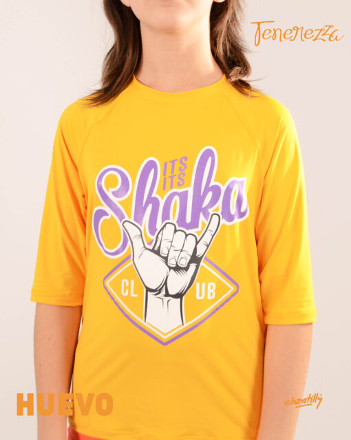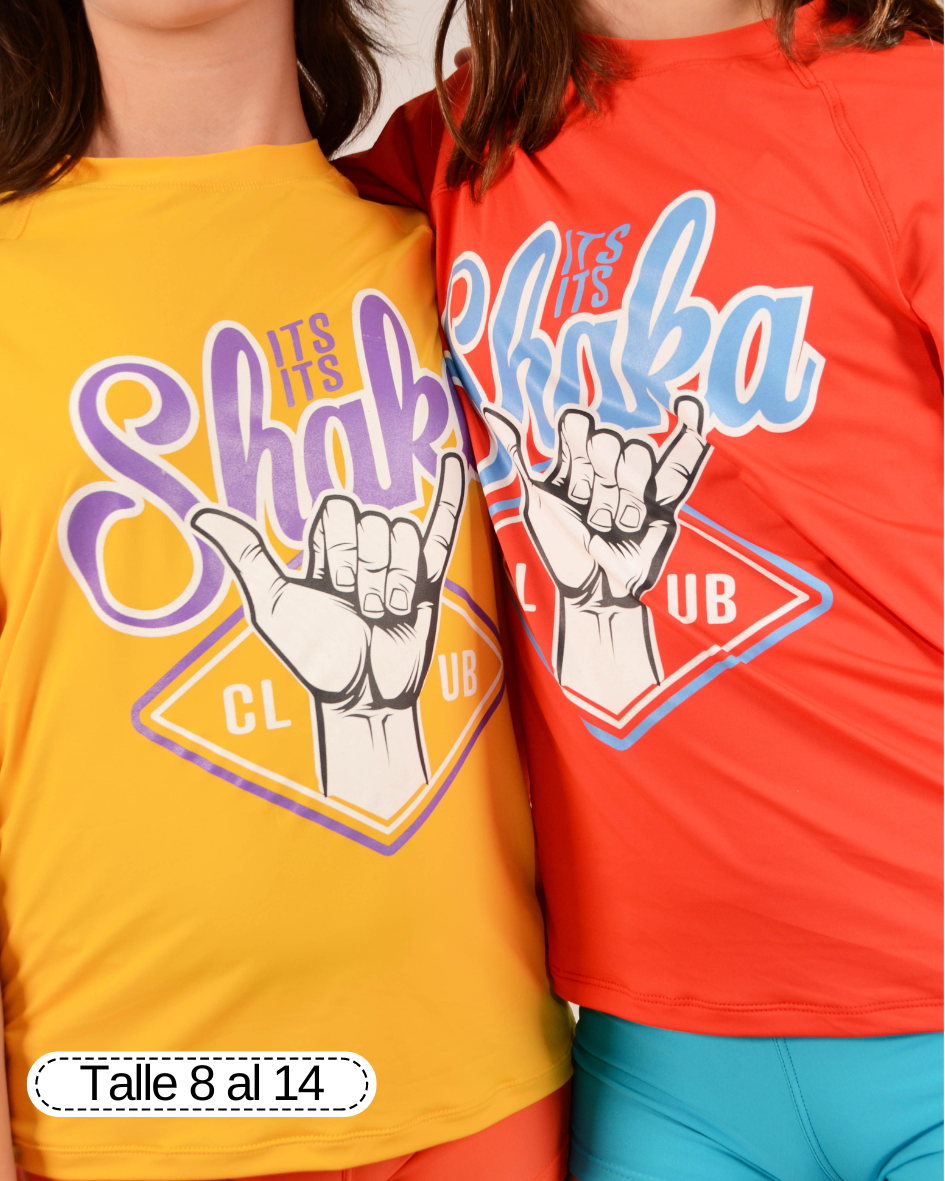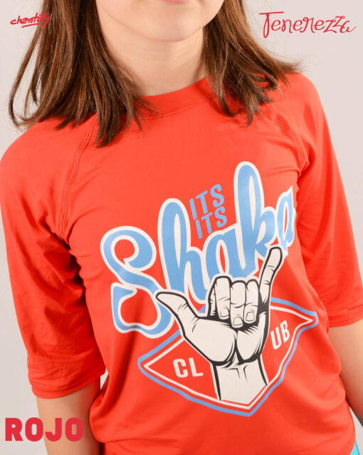 Remera manga corta sin género con cuello cerrado, ideal para evitar los daños del sol en la piel.