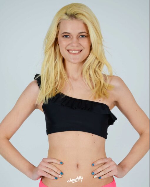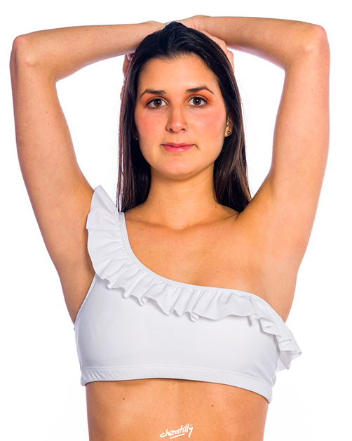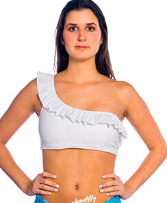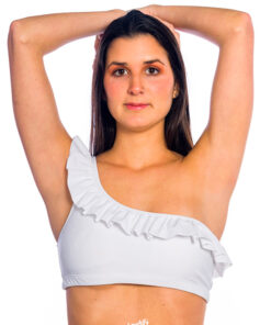 Este top está inspirado, igual que el Chavela, en nuestro top deportivo más vendido, mezcla esa comodidad con la onda de los volados y de un escote asimétrico que es un fuego.