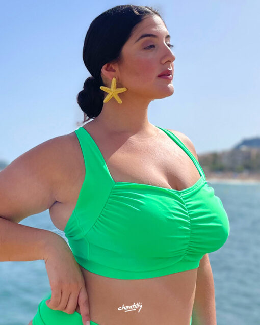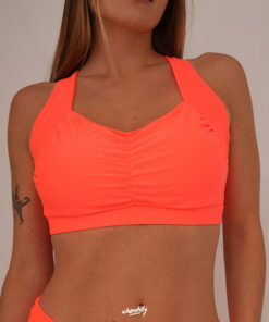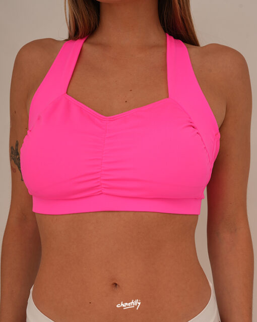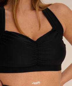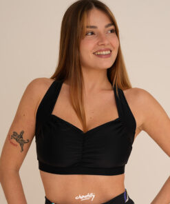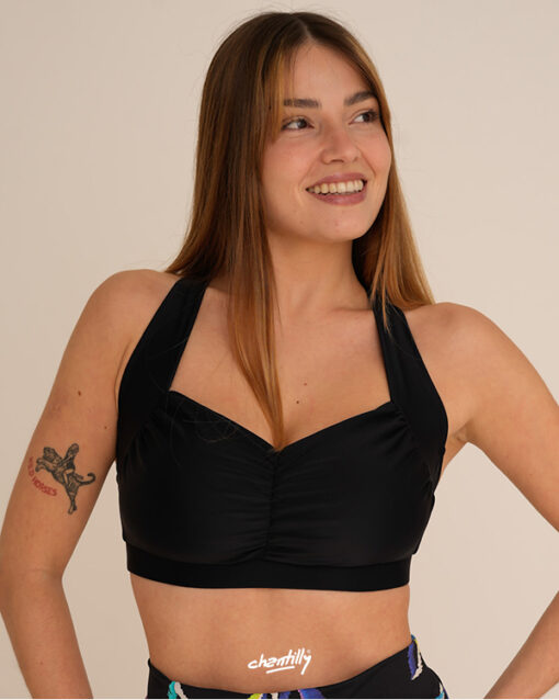 Corpiño con muchísima capacidad, los laterales suben muy anchos por la sisa, lo que genera una sensación de agarre tremenda
