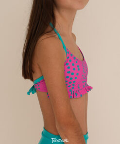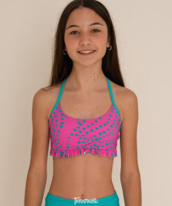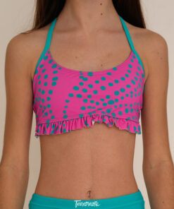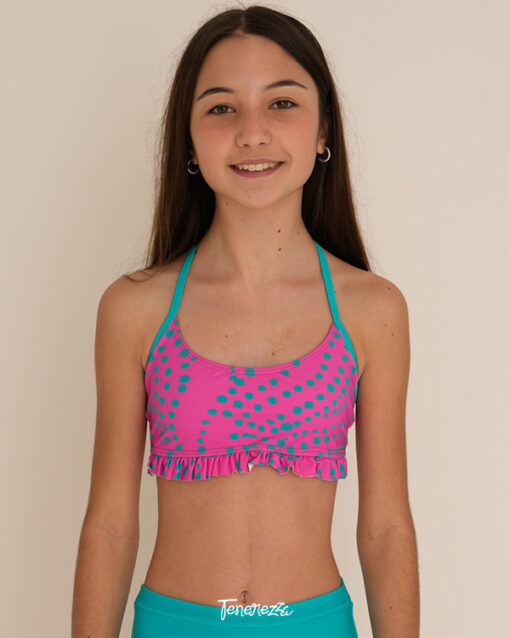 Bajo busto aparte del volado tiene un elástico que brinda mayor sujeción.