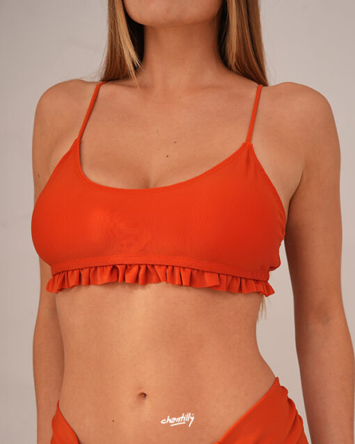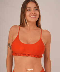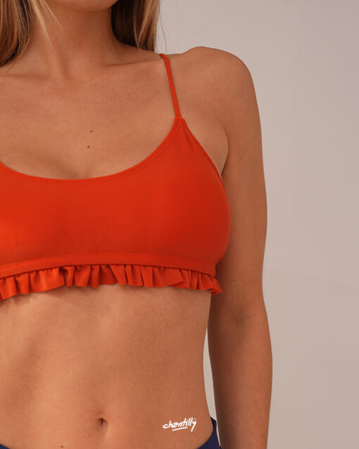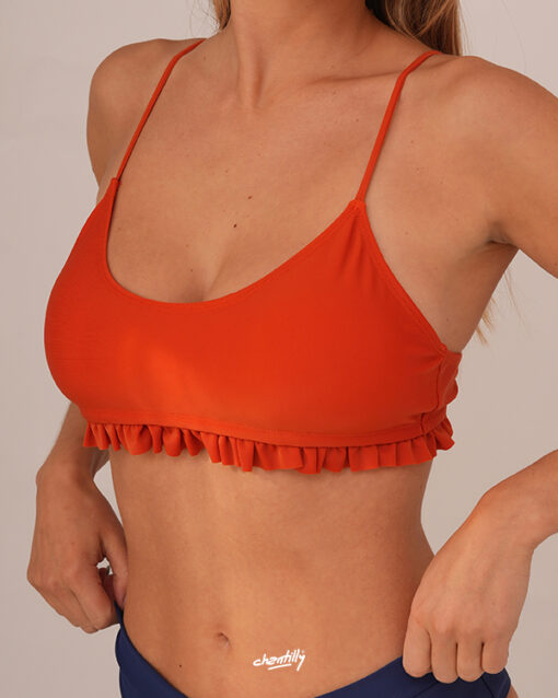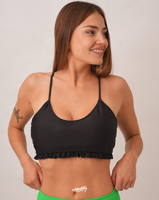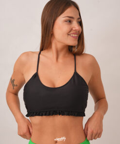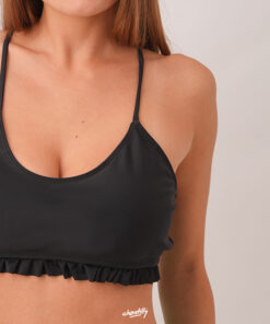 En el bajo busto tiene un voladito que es un sueño, pero no todo es estética…..también viene con un elástico ancho que brinda un buen agarre.