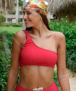 Top un hombro con elástico más ancho en la base para mejor sujeción.